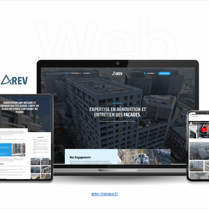 Création d’une interface claire et esthétique, reflétant la qualité et le professionnalisme d’Arev Travaux.